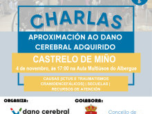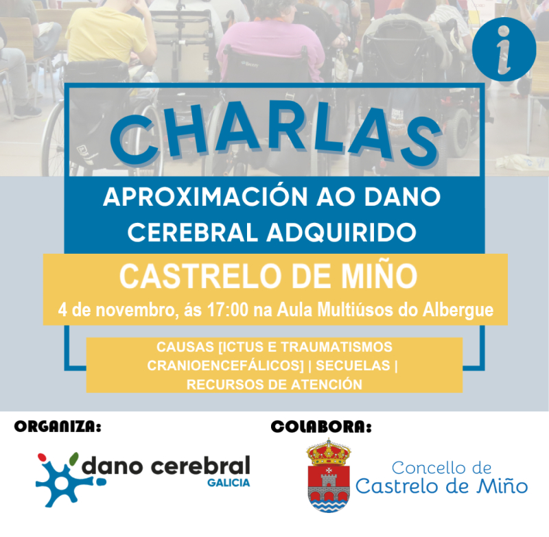 Charla que ten como obxectivos informar sobre as causas como o ictus ou os traumatismos cranioencefálicos. Identificación e prevención do dano cerebral adquirido. Aínda que a asistencia é de balde, é preciso inscribirse. Este trámite pode realizarse chamando ao 988 493 000 (Concello de Castrelo de Miño).